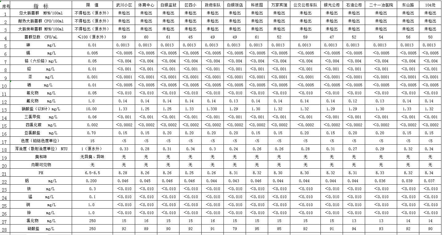 信息名稱 2020年2月用戶水龍頭水檢測表 發布機構 白銀市給排水公司